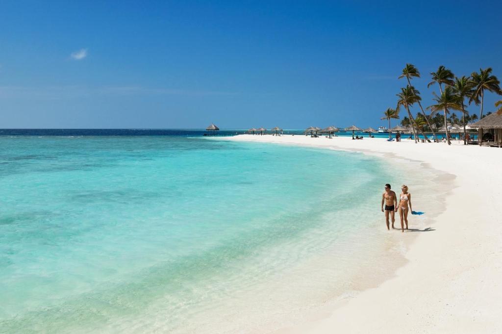 Accommodation ranges from Beach Villas with a Jacuzzi to Water Villas with a whirlpool bathtub and Jacuzzi Water Villas. It has one of the best sandbanks in the Maldives, an amazing house reef, excellent snorkelling off the beach, an infinity pool overlooking the beach, and the Duniye over water spa. Complimentary Wi-Fi is available in all guest rooms and most public areas. Good for couples and honeymooners as from May 2016 Veligandu will be an adults only resort with no children under 18 allowed. The atmosphere is casual and relaxed – shorts, T-shirts and sarongs are the most clothes you will need – not even shoes are required in this barefoot paradise.